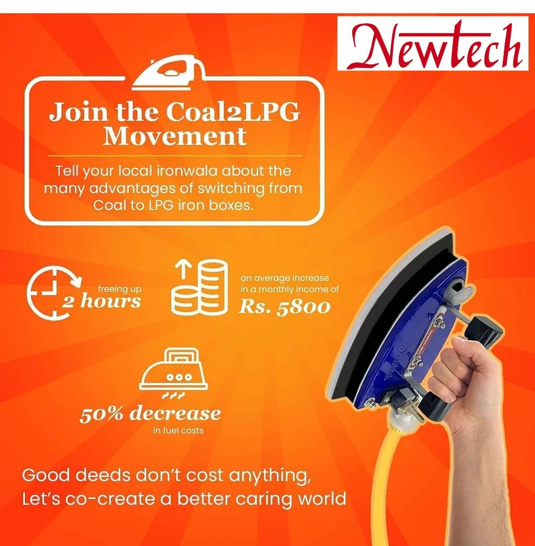 NEWTECH COMPANY IS GIVING BEST SERVICES SINCE 2004.OUR COMPANY IS LOCATED IN MEERUT, UTTAR PRADESH.WE ARE PROUD TO SAY THAT WE ARE THE FOUNDER AND ONLY MANUFACTURER AND SUPPLIER OF L.P.G IRON IN INDIA.NEWTECH IS THE ONLY SINGLE BRAND IN INDIA WITH VERIFIED MANUFACTURER AND TRUSTED SELLER OF OUR LISTED PRODUCTS.LPG irons are the ideal solution for removing wrinkles from fabric wherever there is no (or insufficient) power supply. LPG irons require no electricity, run utterly on LPG cylinders and are power saving. The LPG-fuelled irons are eco-friendly and have no side-effects, compared to conventional coal-fired iron boxes.The flow of the gas can be regulated by a knob regulator. Do not forget to turn the knob on your gas cylinder! With an aim to provide an energy-saving and low cost option to iron boxes operated through electricity, an innovator has come up with an iron box operated with the help of Liquified Petroleum Gas (LPG).The product works on the parameter that the LPG is directly fed from the cylinder to the iron. The iron contains a burner to which the gas flows.